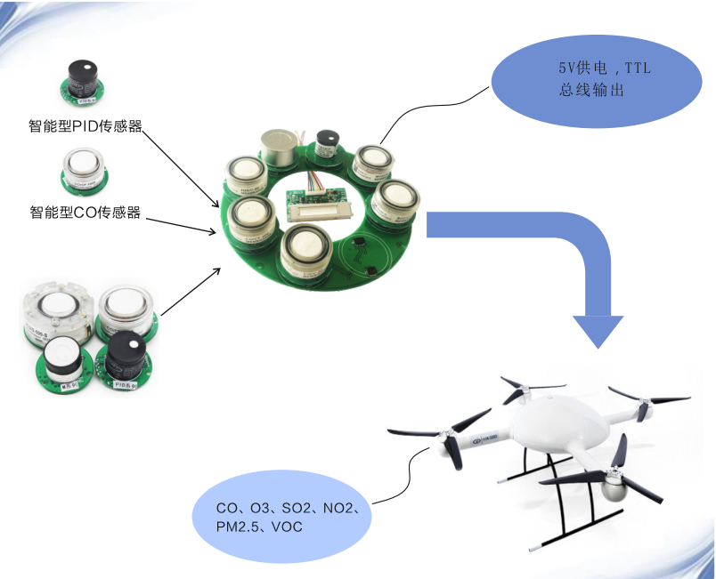 但是由于無人機的載荷有限,要完成高精度的大氣環(huán)境監(jiān)測工作需要高精度的傳感器,而傳統(tǒng)傳感器往往在體積、重量等方面的限制可供選擇的不多。因此,需要研究開發(fā)適合無人機搭載的小型,輕型傳感器,實現(xiàn)無人機預警監(jiān)測。