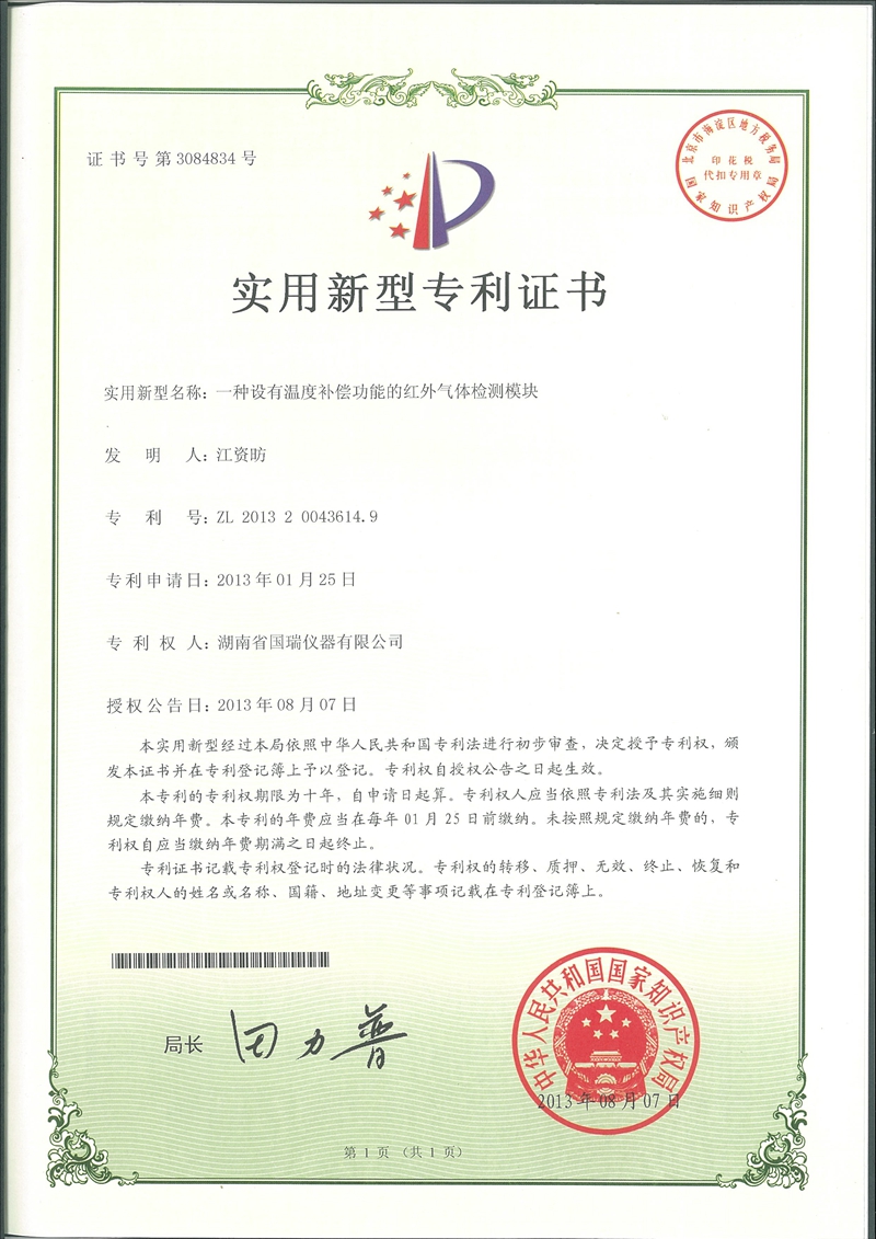 一種設(shè)有溫度補(bǔ)償功能的紅外氣體檢測(cè)模塊專(zhuān)利
